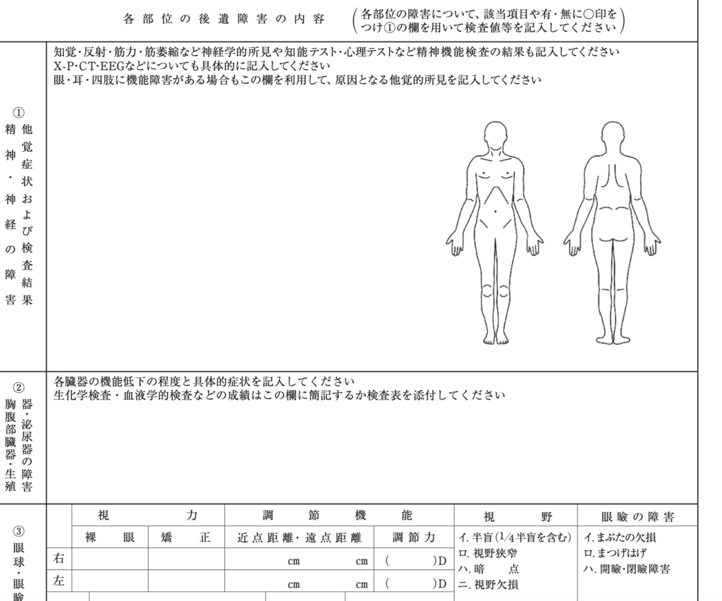 後 遺 障 害 の項目に