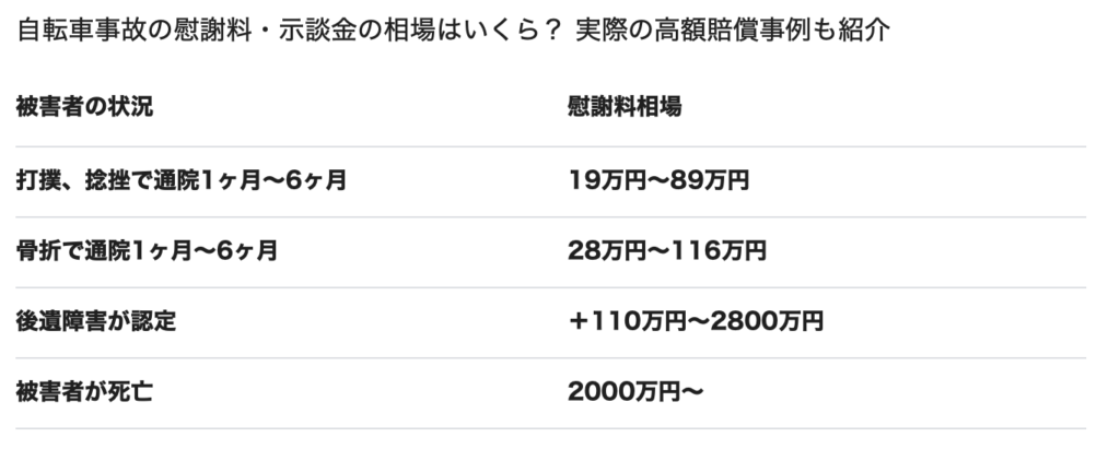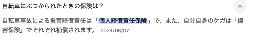 自転車でぶつかられた私は「個人賠償責任保険」から 「打撲と捻挫でも」最高額89万(厄落とし、でしょうか)